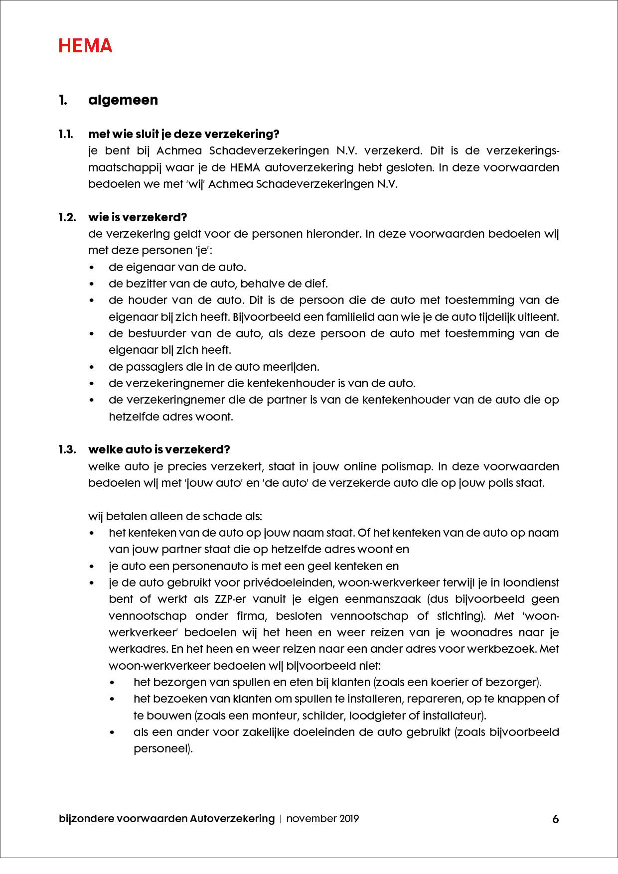 Hema verzekeringsvoorwaarden