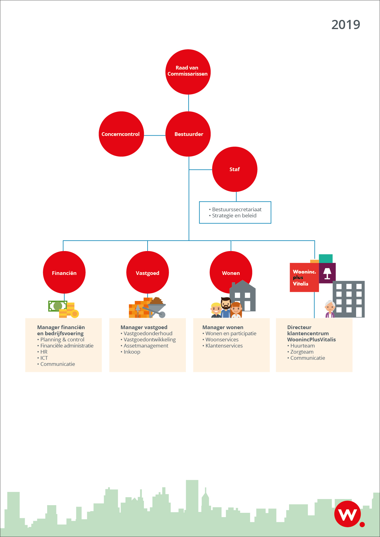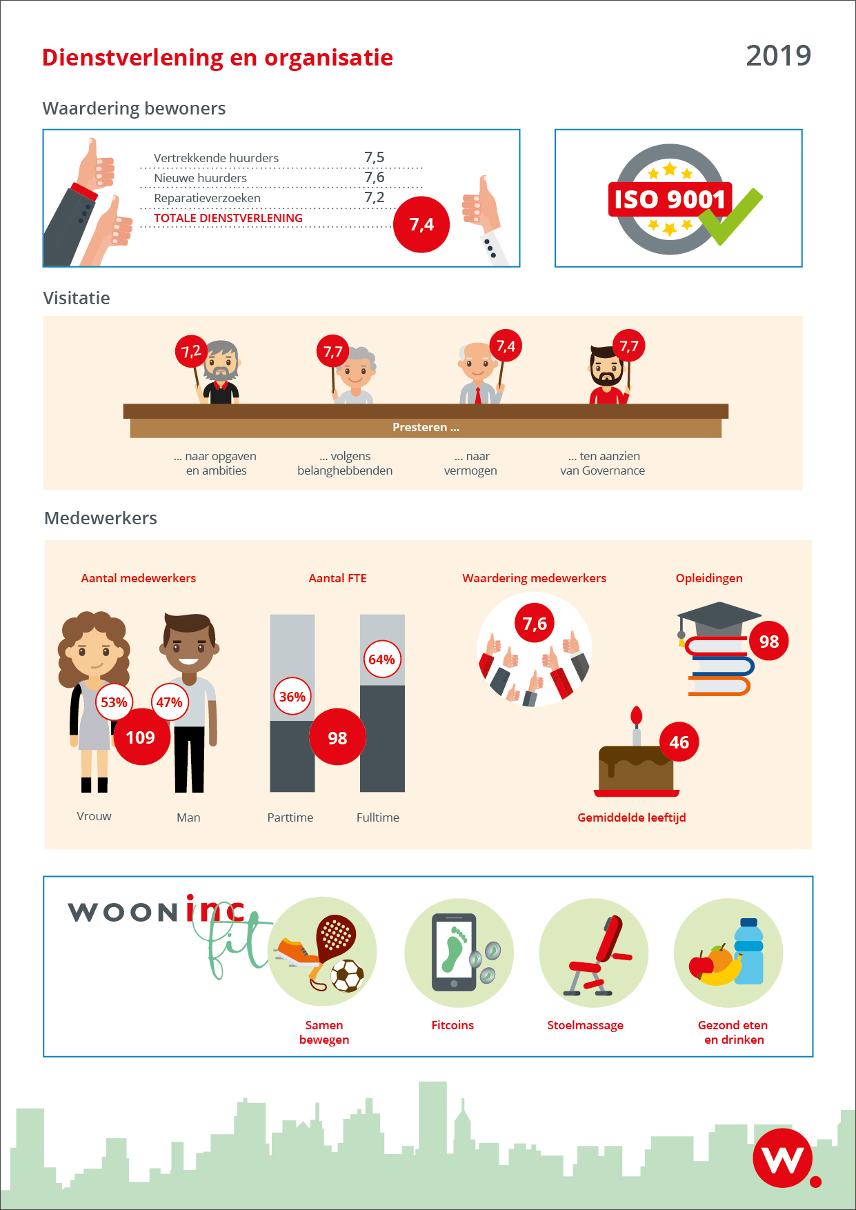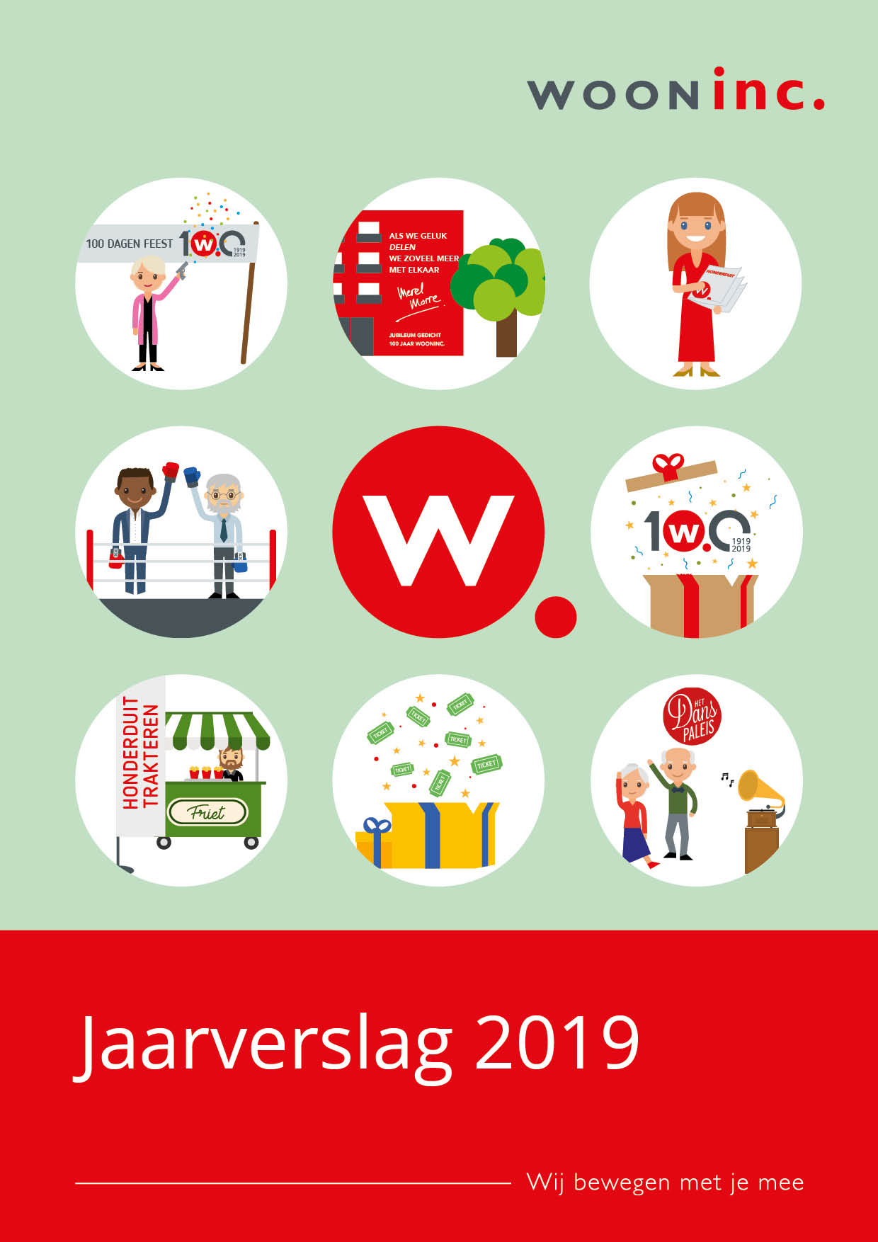 In 2019 vierde Wooninc. haar jubileumjaar. De illustraties die we daarvoor ontwikkeld hebben, hebben we in het jaarverslag laten terugkomen. Hierdoor is het een kleurrijk en illustratief geheel geworden.