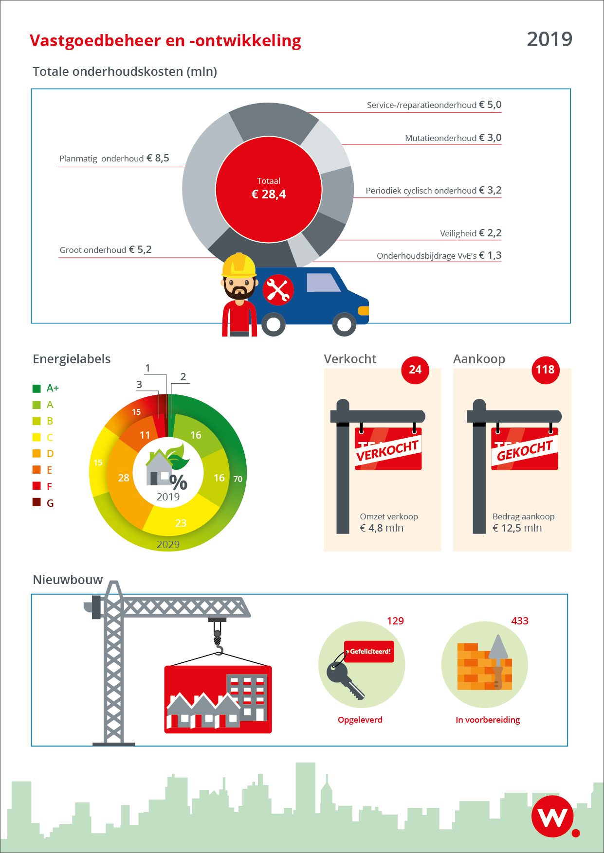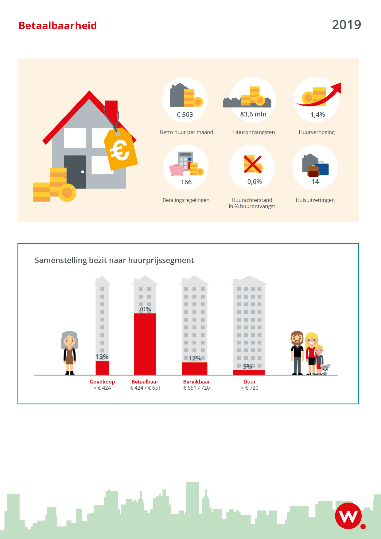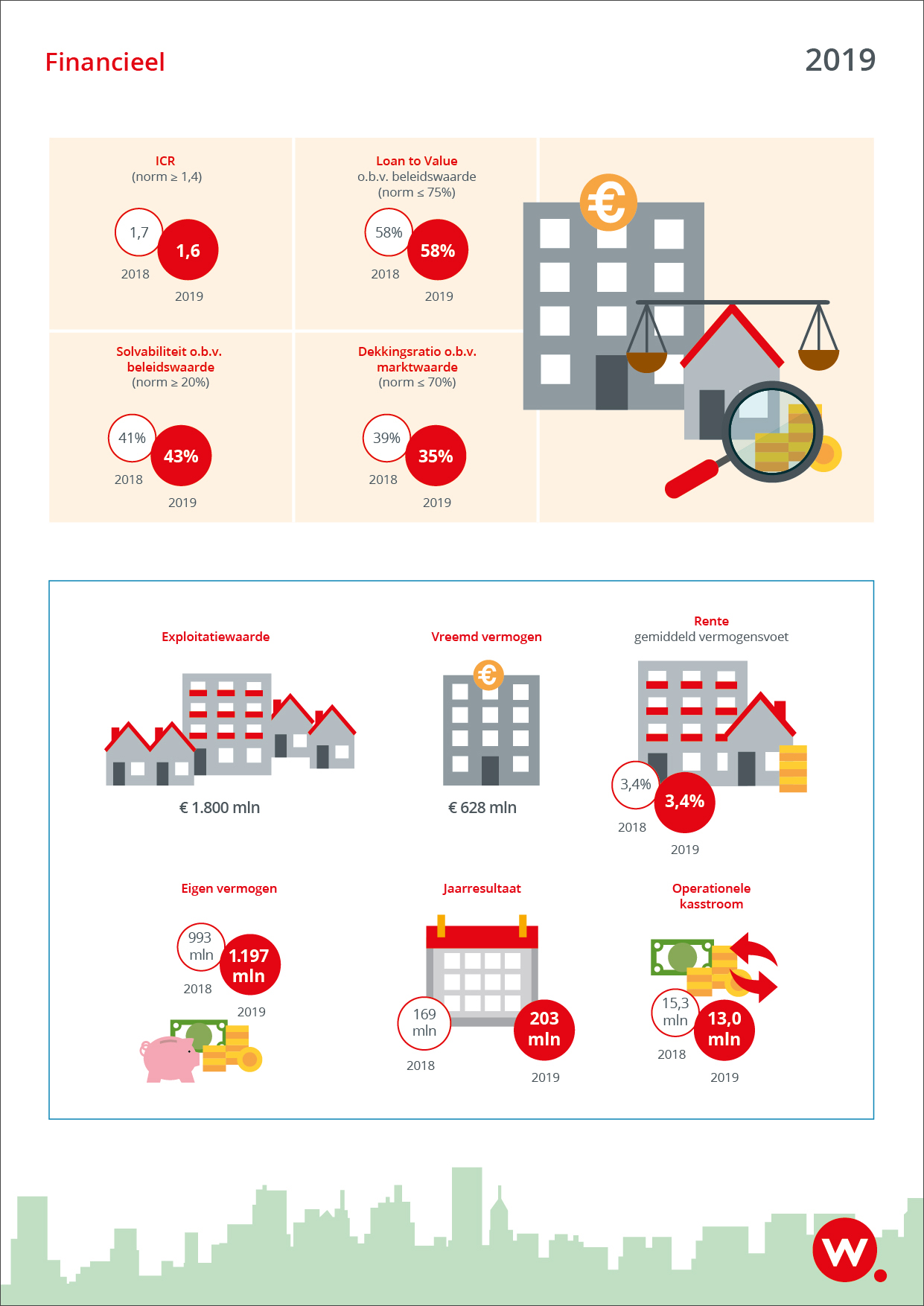 In 2019 vierde Wooninc. haar jubileumjaar. De illustraties die we daarvoor ontwikkeld hebben, hebben we in het jaarverslag laten terugkomen. Hierdoor is het een kleurrijk en illustratief geheel geworden.